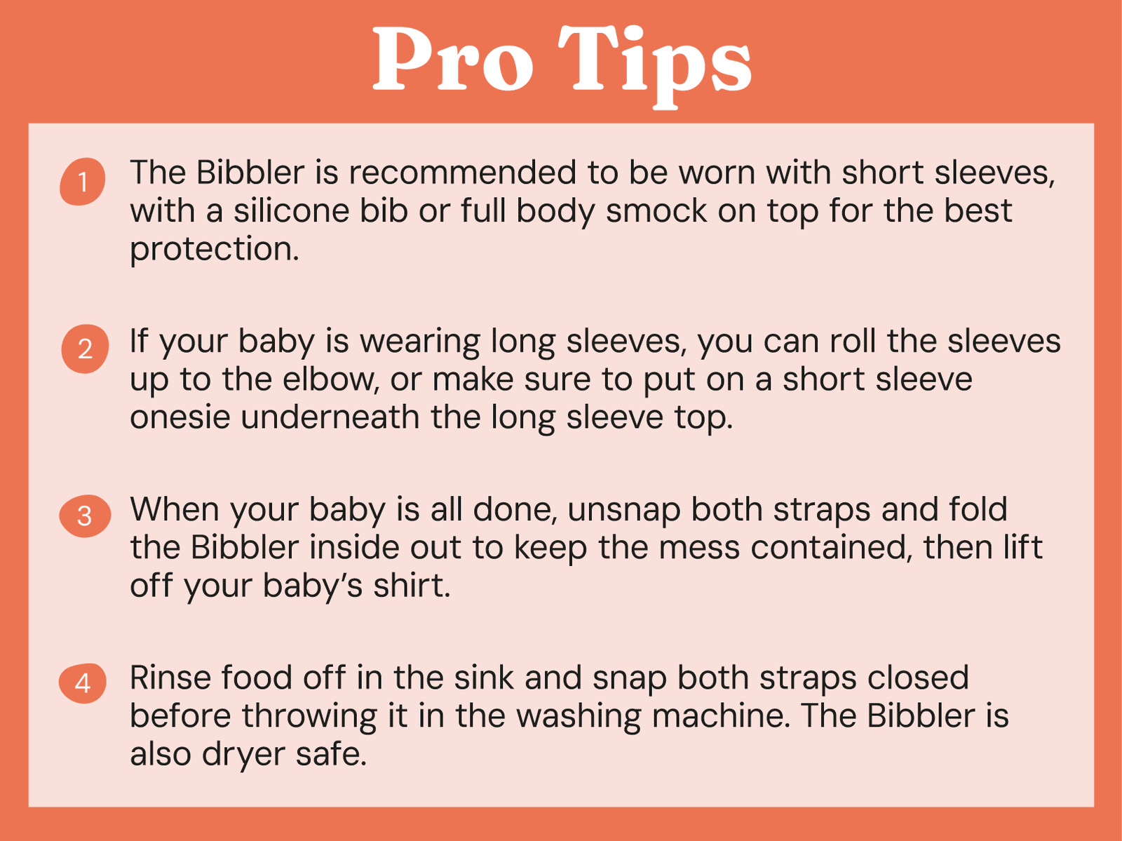 Traditional bibs fasten around the neck and leave an opening for dropped food and drool to sneak through. That's why when you take them off, your baby's shirt is covered underneath, but with the Bibbler, you can finally say goodbye to stains!